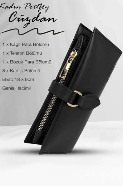 Kadın Fermuarlı çıtçıtlı Bozuk Para Bölmeli Cüzdan Kartlık Aksesuar,yılbaşı Hediyesi damla siyah
