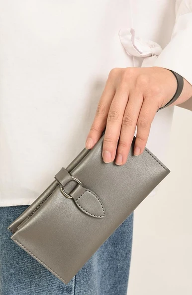 Kadın Fermuarlı çıtçıtlı Bozuk Para Bölmeli Cüzdan Kartlık Aksesuar,yılbaşı Hediyesi damla gri