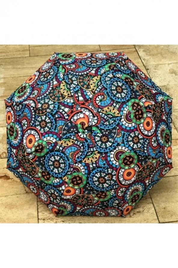DZC KUENLER AVM Marlux Kadın Mavi Etnik Desen Rüzgara Karşı Dayanıklı Manuel Şemsiye