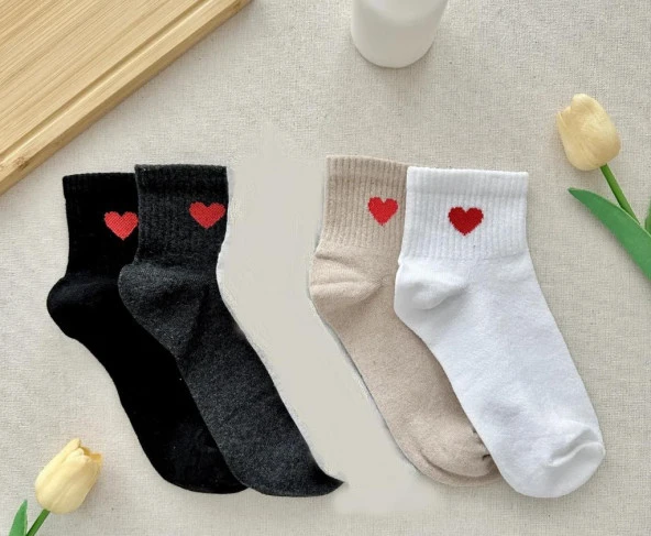 4 Çift Sevimli Desenli Kadın kolej kalp dikişli Çorap