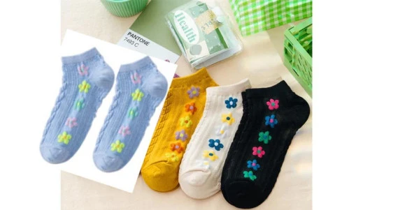 4 Çift Sevimli Desenli Kadın patik papatyalı dikişli Çorap 36-40