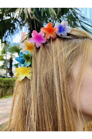 6'LI RENGARENK LOTUS ÇİÇEĞİ MANDAL TOKA 8 cm