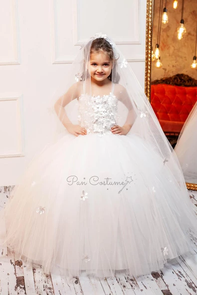 Beyaz Kuyruklu Kız Çocuk Elbise