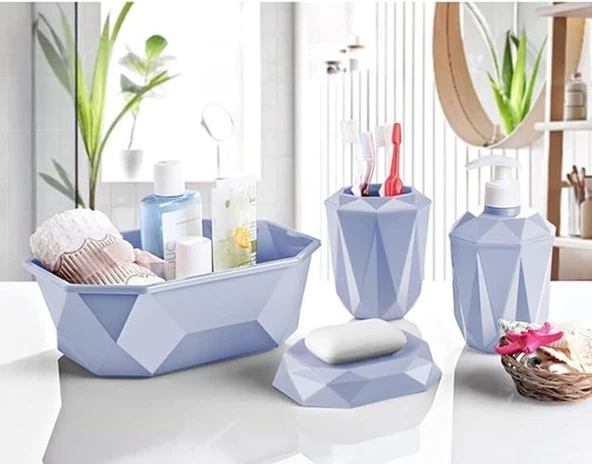 Prizma 4'lü Banyo Seti - Banyo Organizer - Banyo Dekorasyon Seti Buz Mavi