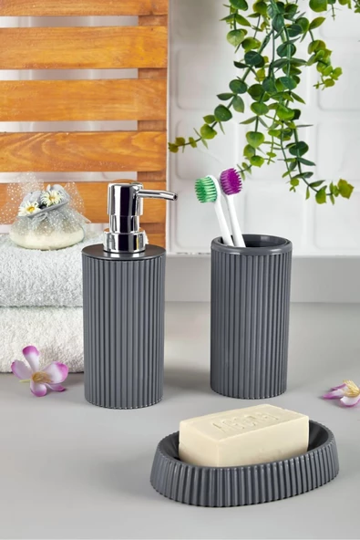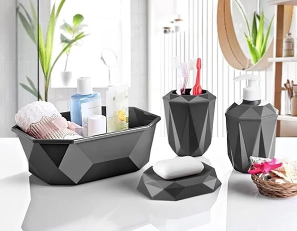 Prizma 4'lü Banyo Seti - Banyo Organizer - Banyo Dekorasyon Seti Antrasit Gri