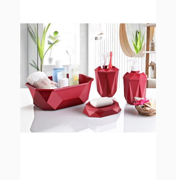 Prizma 4'lü Banyo Seti - Banyo Organizer - Banyo Dekorasyon Seti Bordo Renk
