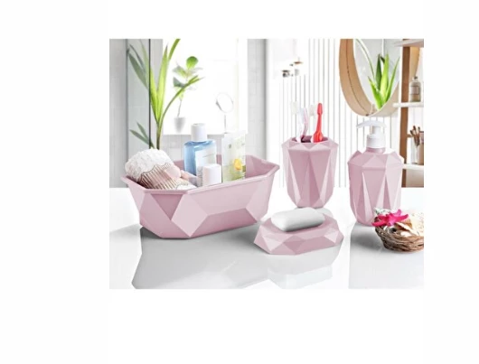 Prizma 4'lü Banyo Seti - Banyo Organizer - Banyo Dekorasyon Seti Pudra Renk
