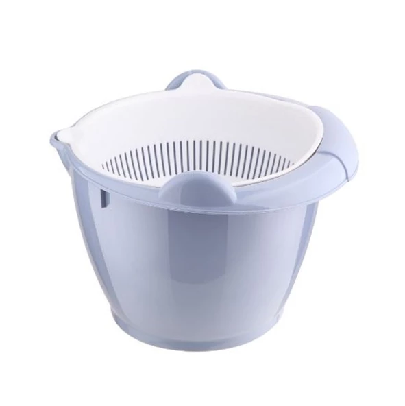 Buz Mavi Dönerli Çiftli Süzgeç Makarna Süzgeci