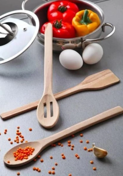 3'lü Ahşap Kaşık Servis Seti