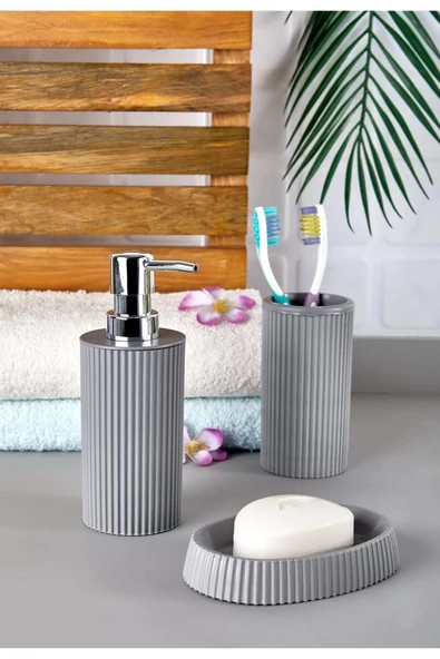 3 Parça Çizgili Banyo Seti Gri