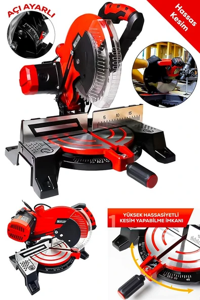 Gönye Kesme Makinesi 49x37x40 cm Sağ-Sol Yatar 45 Derece Keser Açı Ayarlı 255x25.4x2.8x40T