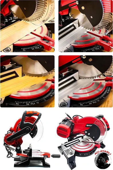 Kızaklı Gönye Kesme Makinesi 1800w 255×30×2.8×40t Kırmızı