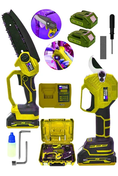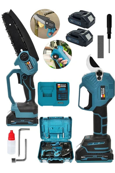 WaltMann 2 Li Set 58 Vf 5 Ah Çift Akülü Çelik Şanzıman Şarjlı Dal Budama Testeresi