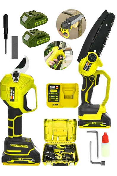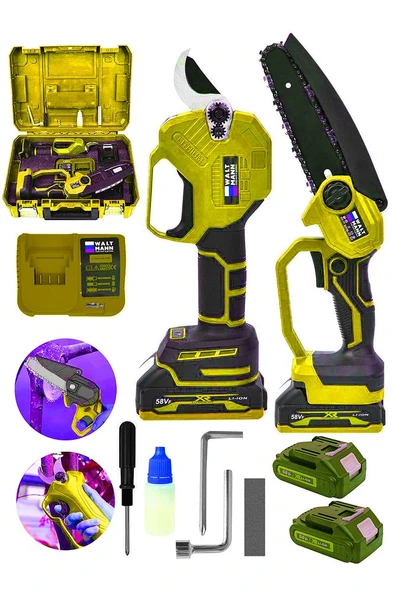 WaltMann Çift Bataryalı Extra Güçlü Şarjlı Dal Budama Ağaç Odun Kesme Sarı
