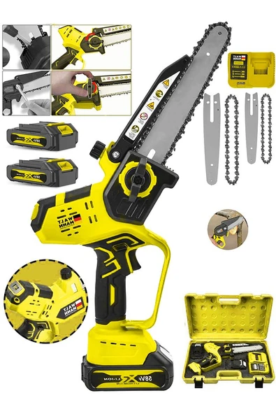 WaltMann Çift Bataryalı Extra Güçlü 58vf Şarjlı Dal Budama Ağaç Odun Kesme Makinası Sarı