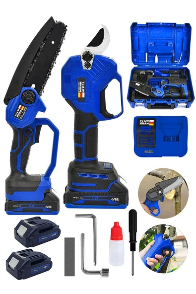 Germany 2 Li Set 58 Vf 5 Ah Çift Akülü Çelik Şanzıman Şarjlı Dal Budama & Testeresi Mavi