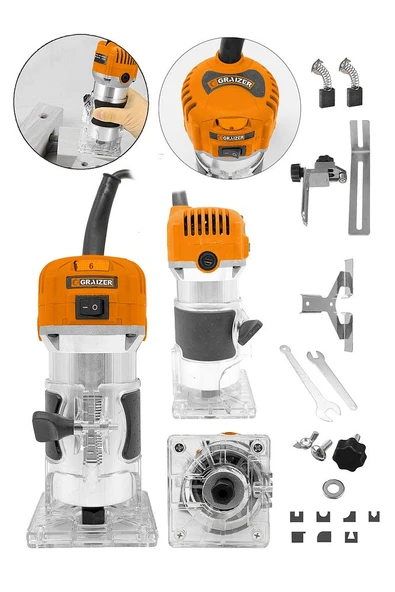6 Kademe Devir Ayarlı Formika Traşlama Freze Makinesi 6 Mm + 12 Adet Uç Turuncu