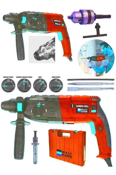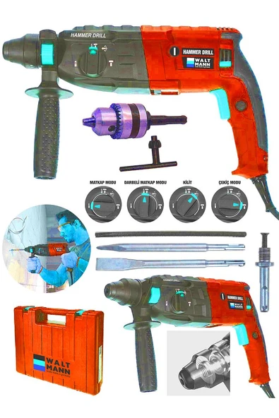 WaltMann 1200w Kırıcı Delici Hilti Darbeli Matkap 2-28mm Kırmızı