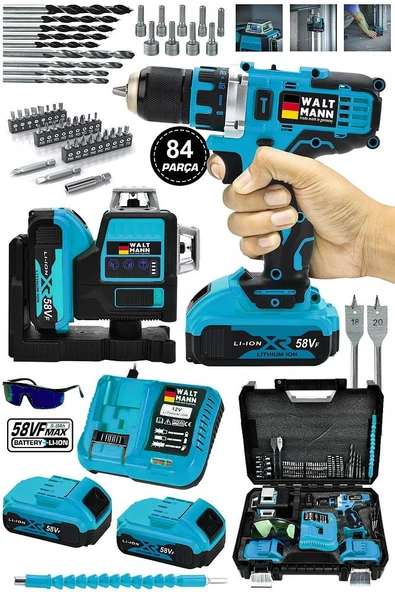 WaltMann 3 lü Set XR LI-ION Batarya Kömürsüz Motor Şarjlı Matkap Turkuaz