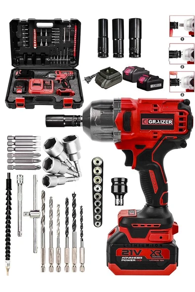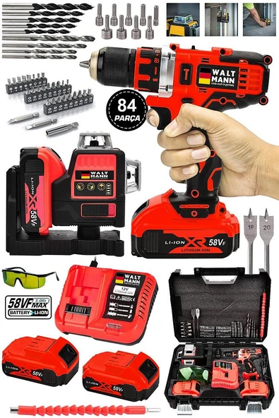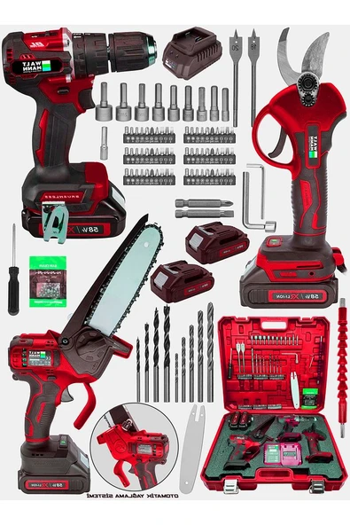 WaltMann 3 lü Set XR LI-ION Batarya Kömürsüz Motor Şarjlı Matkap Kırmızı
