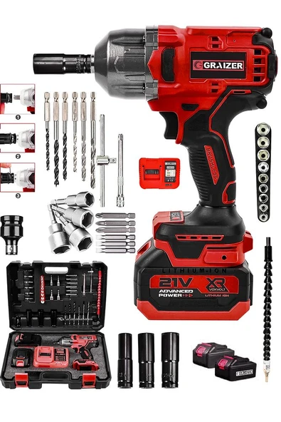 21v Çift Akülü Şarjlı Matkap 800nm Torklu Somun Sıkma Sökme Kırmızı