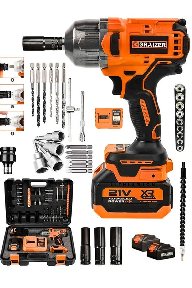 21v Çift Akülü Şarjlı Matkap 800nm Torklu Somun Sıkma Sökme Turuncu