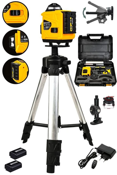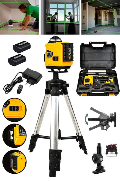 Graizer Profesyonel 360° 16 Köşe Otomatik Hizalama Tripod'lu Lazer Metre Hizalama Sarı