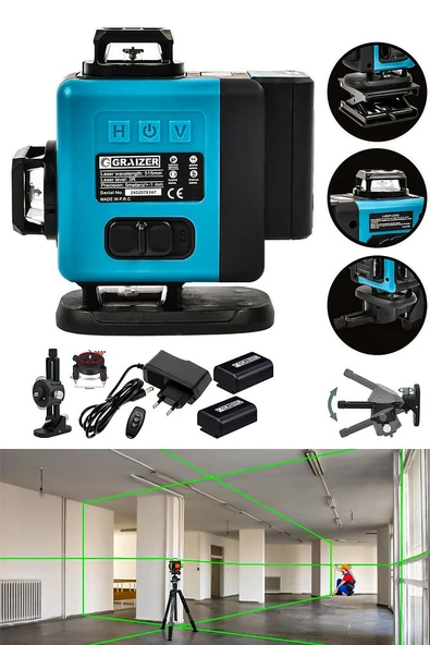Graizer Profesyonel 360° 16 Köşe Otomatik Hizalama Tripod'lu Lazer Metre Hizalama Mavi