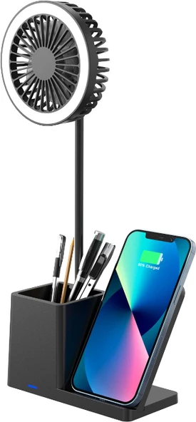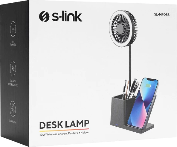 Morlimon S-Link SL-M9055 Typec 10W Kablosuz Şarj Cihazı Fanlı Kalemlikli Masa Lambası