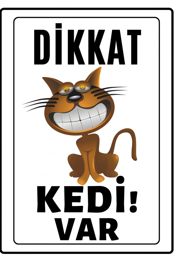 Emach Dizayn Dikkat Kedi Var Uyarı ikaz Levhası PVC Kaplama A4 Sırıtan
