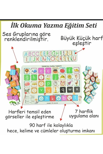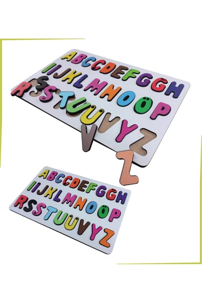 "Okuma Yazma Öğreniyorum Seti" Ahşap Oyuncak Türkçe İngilizce Harfler İlk Okuma Seti Harf Puzzle