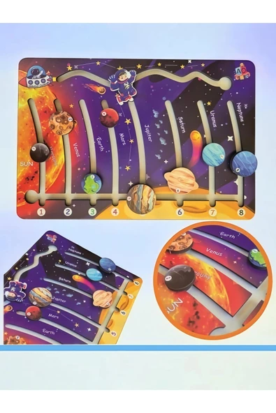 Hareketli Gezegenler Uzay Macerası Ahşap Oyuncak Eğitici ve Eğlenceli Oyuncak