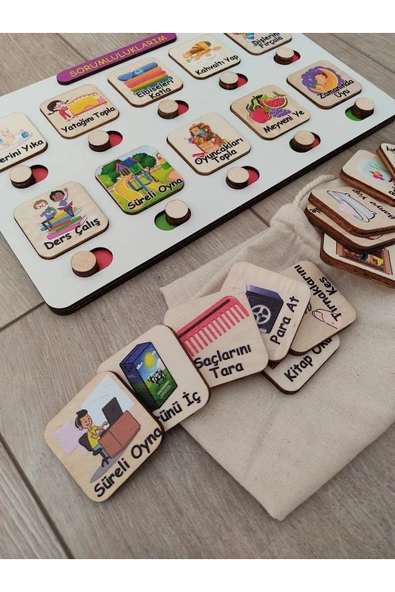 Sorumluluk ve Görev Tablosu - Montessori Eğitici ve Eğlenceli Ahşap Oyuncak