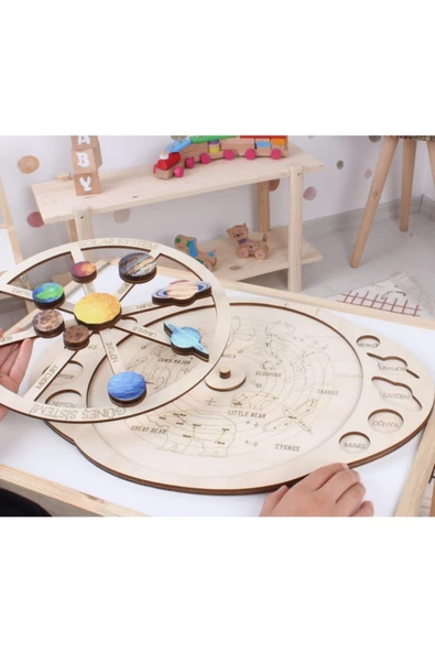 Eğitici Ahşap Oyuncaj Hareketli Renkli Güneş Sistemi Ve Gezegenler Ile Takım Yıldızları