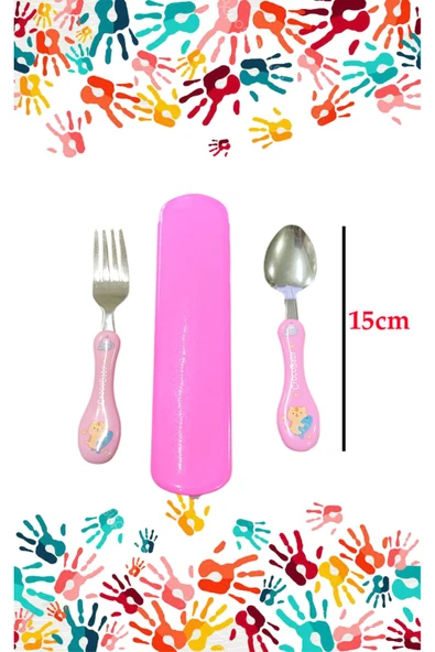Ayver ÇOCUKLARA ÖZEL PLASTİK KUTUSUNDA METAL ÇATAL-KAŞIK TAKIMI OKUL BESLENME ÇANTASI AKSESUARI