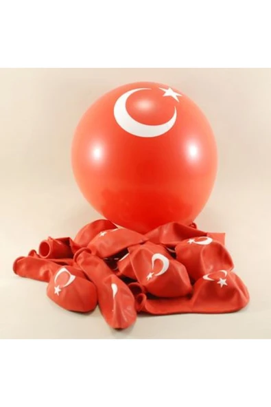 Ayver LATEKS AY YILDIZ BASKILI BALON TÜRK BAYRAĞI KIRMIZI BEYAZ BALON 10 ADET