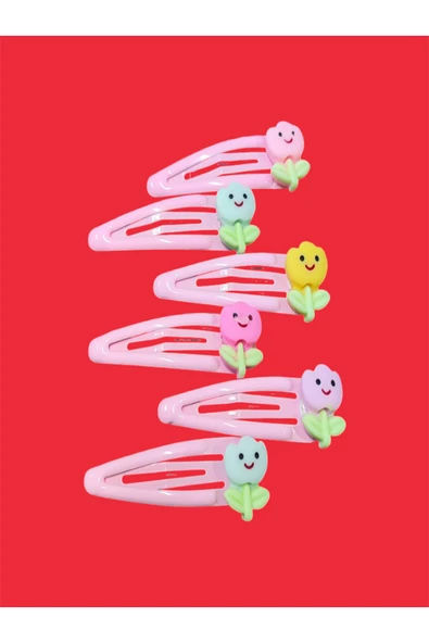 Ayver 6'LI SİLİKON ÇİÇEK GÜLEN YÜZ FİGÜRLÜ METAL TOKA