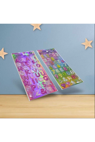2'Lİ RENKLİ ALFABE VE SAYILAR SİM DOLGULU MODEL YAPIŞKANLI STİCKER