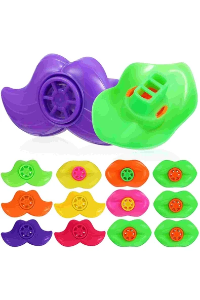 Ayver NOSTALJİK EĞLENCELİ ÇEŞİTLİ DESENLİ SİREN DÜDÜK DUDAK DÜDÜK OYUNCAK 10 ADET