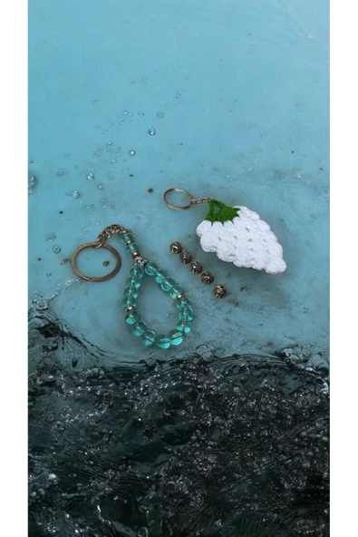 ŞIK TASARIM EL ÖRMESİ VE CAM BONCUK ANAHTARLIK BİLEKLİK+7 ADET HARF