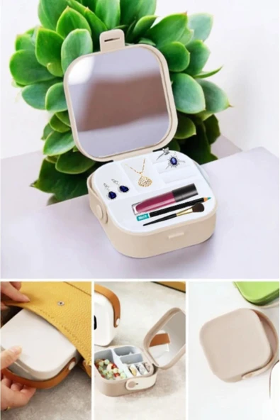 Ayver ÇANTA BOY ÇANTA İÇİ AYNALI MİNİ PRATİK SEYAHAT MAKYAJ TAKI KUTUSU