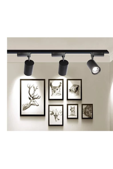 1 Metre Ray 3 Adet Ray Spot Set Siyah Kasa Günışığı Renk 20 W Dekoratif Spot