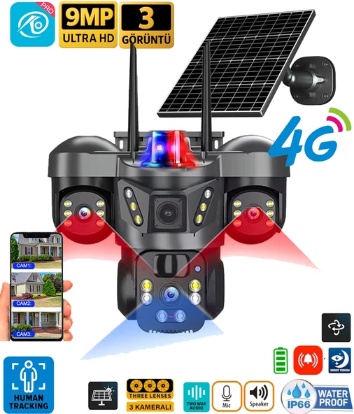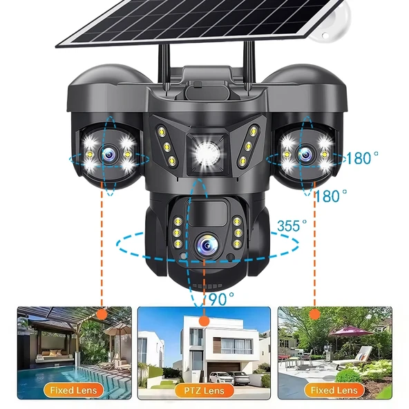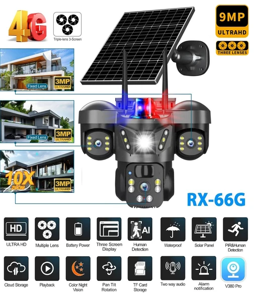 Ventus V380 Pro RX-66G 9MP (3+3+3) Üç Kameralı UltraHD 4G Güneş Enerjili Akıllı Güvenlik Kamerası