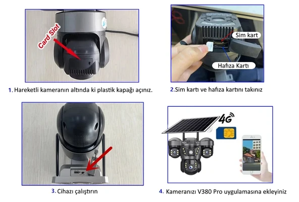 Vivatech S5704 256GB 8MP 4 Kameralı 4G Çift Solar Panel 16X Zoom Dual Batarya HiEasy AOV (Sürekli Kayıt) Gece Görüş Çift Yönlü Ses HiEasy Türkçe