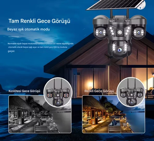 V380Pro 735W 6MP Dual Lens Wifi Güneş Enerjili Hareketli Akıllı Kamera Gece Görüş Türkçe