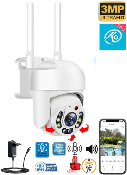 Ventus 360 Dönebilen Kablosuz Wifi Ip Kamera Speed Dome 1080p FullHD Gece Görüşlü Hareketli Dış Mekan Sesli New Edition