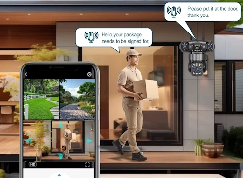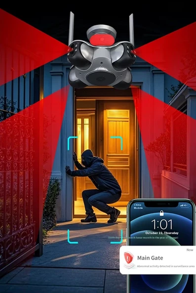 IO-781 4 Kameralı Wifi 16MP Akıllı Gece Görüşlü Sesli Kamera Türkçe Uzaktan İzleme Sirenli