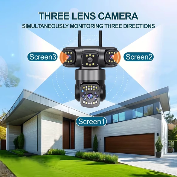 O-KAM 6030 3 Kamera 3 Görüntü 15MP (5MP+5MP+5MP) Gece Görüş Wifi Sesli Konuşma Türkçe