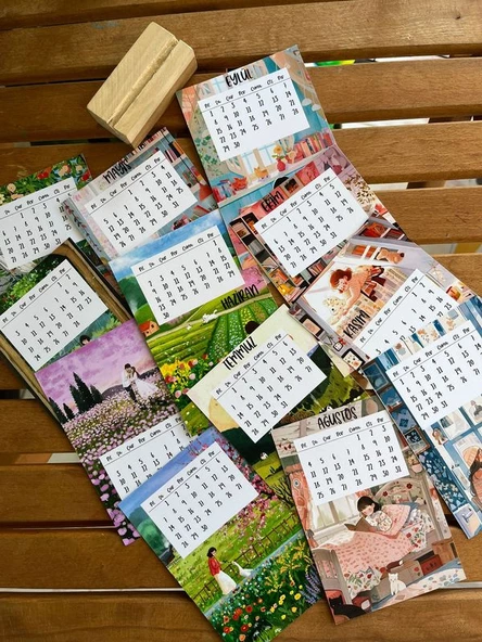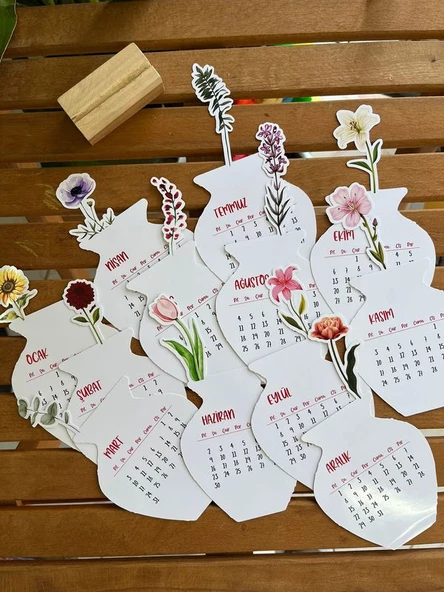 2025 Ahşap Ayaklı Çiçekli Özel Tasarım Takvim