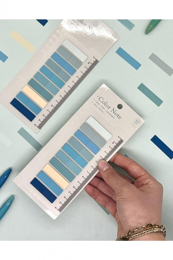 10 Farklı Renkte Mavi Tonları Renkli Cetvelli Şeffaf Pet Indeks / Index Sticker /post-it/sticky Note